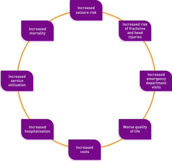 Non-adherence to medication increases the risk of seizures and is a potentially modifiable risk factor for sudden unexpected death in epilepsy (SUDEP).1